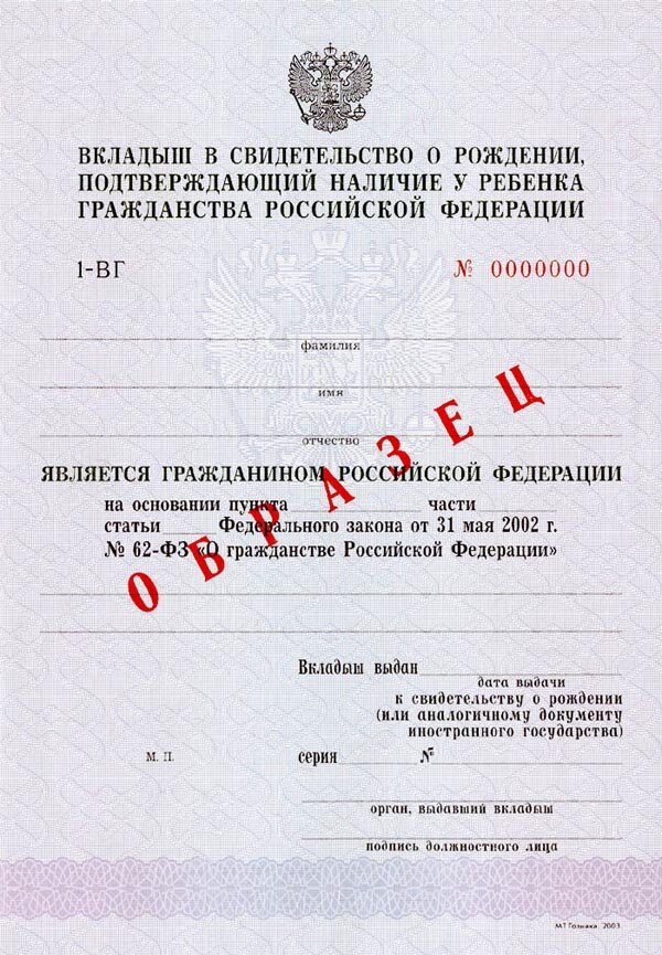 Вкладыш о гражданстве ребенка