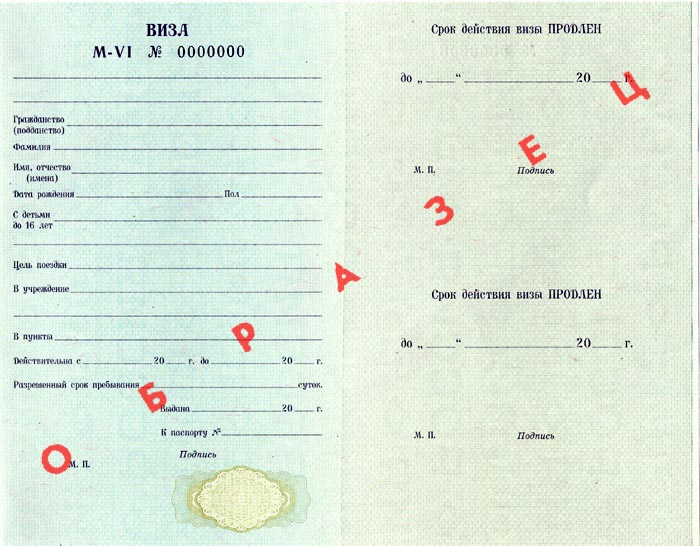 Образец вкладного визового талона Серия M-VI